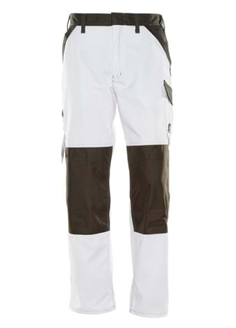 Slidstærke trenålssømme på ben og i skridt forlænger produktets levetid.; Særlig konstruktion af buksebenet bagpå, således der ikke er overflødigt stof i knæhasen, når man ligger på knæ.; Knælommer kan reguleres, så knæpuder er placeret optimalt i forhold til dine knæ.; Det mørke stof er placeret, hvor produktet er mest udsat for snavs.; Som standard i tre forskellige benlængder, så du kan vælge den bedste pasform og optimale placering af detaljer netop til dig.; Produktet kan industrivaskes.; Samcertificeret til brug med MASCOT knæpudetype SHORT eller LONG, da knæpudelommen kan højdejusteres.