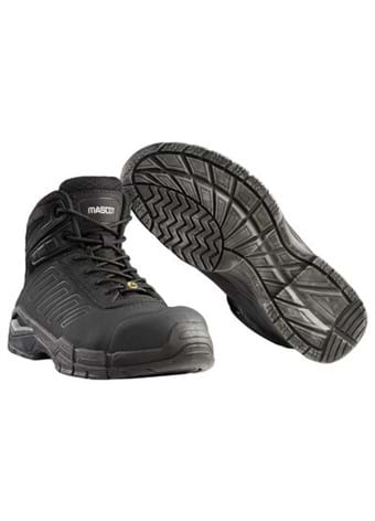 Fleksibelt sømværn af specialtekstil øger komforten og hindrer kuldebroer. Ydermere er tekstilsømværnet større og beskytter dermed mod søm og skarpe genstande på et bredere område sammenlignet med stålsømværn.; Ydersålen af slidstærk PU smitter ikke af. Meget skridhæmmende sål/SRC.; Stabiliseret med det MASCOT-patenterede multifunktionsgelenk, der gør fodtøjet velegnet selv på ujævne underlag eller ved arbejde på stiger.; Dette fodtøj er helt fri for metal - en afgørende fordel i fx lufthavne.; Tåkappen er af komposit og dermed helt fri for metal. Komposit er hverken kulde- eller varmeledende, og tåkapper af komposit yder derfor ekstra komfort i både varme og kolde omgivelser.; Stødabsorberende indlægssåler er udtagelige, slidstærke og ergonomiske.; ESD-godkendte.