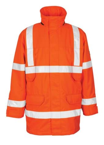 Åndbar, vind- og vandtæt MASCOTEX® med tapede sømme.; Quiltfór kan tages ud.; D-ring til nøgler eller ID-kort.; Mulighed for at påsætte hætte med trykknapper.; Ekstra synlig for omgivelserne ved hjælp af både lodrette og vandrette reflekser.