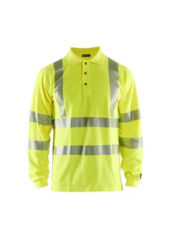 Flammehæmmende langærmet High Vis polo shirt med flammehæmmende fleksible trykte reflekser. Ribstrikket krave samt forstærket nakke og skulder sømme. Certificeret i henhold til EN ISO 20471 klasse 3, beskyttelsesbeklædning med høj synlighed. Flammehæmmende, lysbue og antistatisk certificeret i henhold til EN 1149-5, EN ISO 11612 A1, B1, C1, IEC 61482-2 klasse 1. haf: 73,0%, ATPV: 6,3 cal/cm²