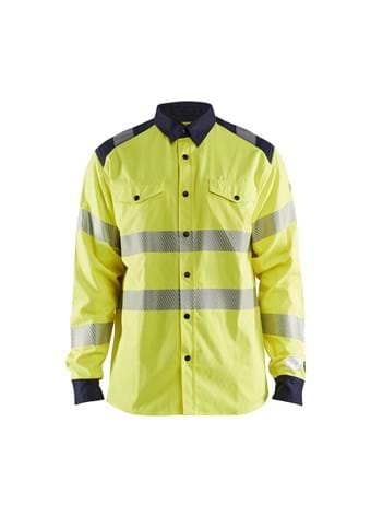 Flammehæmmende og metalfri multinorm skjorte i high vis klasse 2 og 3. Skjorten er fremstillet af et materiale, der garanterer en meget komfortabel pasform og stor bevægelsesfrihed. Certificeret i henhold til EN 1149-5, EN ISO 11612 A1, A2, B1, C1, EN ISO 20471, XS-S klasse 2, M-> Klasse 3, IEC 61482-2, Klasse 1.