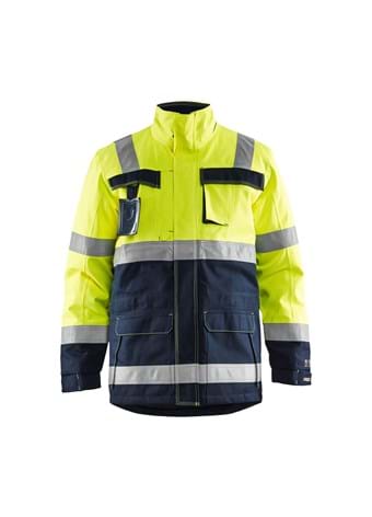 Multinorm vinter parka med aftagelig hætte designet til at blive set fra alle sider - selv når du bøjer dig ned. Højfunktions vind- og vandtæt materiale sikre høj komfort og optimal funktionalitet. Let tilgængelige lommer til alle dine behov kombineret med god pasform, komfortable materialer, funktion og sikkerhed gør denne glimrende jakke til ekstreme og krævende arbejdsforhold. Certificeret i henhold til EN ISO 20471, klasse 3, EN 1149-5, EN 61482-1-2(klasse 1), ISO 11611 (klasse 2, A1), ISO 11612 (A1, B1, C1), EN13034 PB (6), EN 342 , EN 343:3,1.