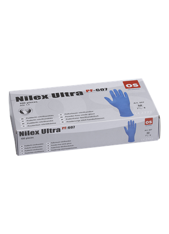 607Tynd nitril engangshandske med rullet kant. Handsken er pudderfri og er ens til højre- og venstre hånd. Handsken er væsketæt og velegnet til håndtering af mange kemikalier, hvor berøringstiden er kort. Tykkelse 0,05 mm. Handsken er godkendt til håndtering af fødevarer.