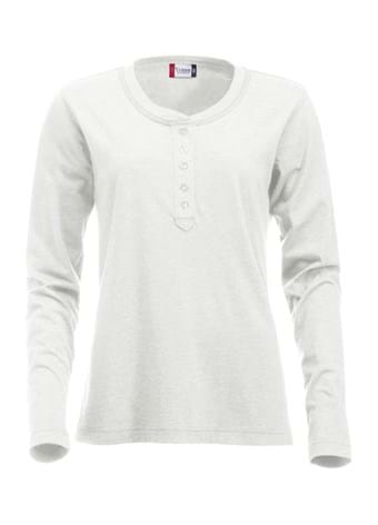 Langærmet T-shirt med stolpelukning - 4 knapper på herremodel og 5 på damemodel.