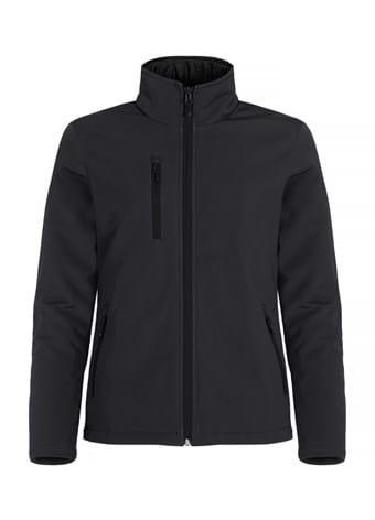 En polstret softshelljakke med tre udvendige lommer, omvendte SBS lynlåse og en inderlomme. Sort for med lynlås for nem adgang til broderi. Den har en let aftagelig nakkelabel til ommærkning.