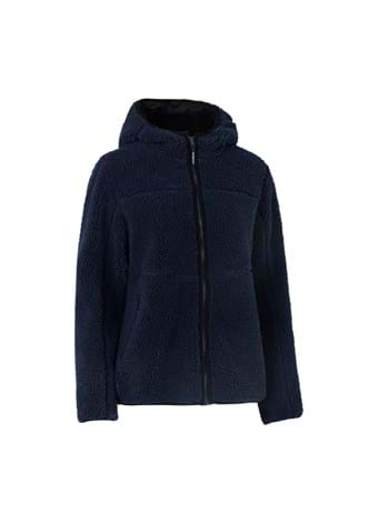 Blød teddy fleece jakke med hætte og indvendige lynlås lommer. Særligt velegnet til overgangsjakke til efter-eller forår. Jakken har kontrastfarve på inderside samt ærme og lynlås, som giver den et moderne præg.