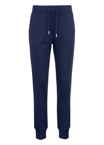Eksklusive sweatpants i økologisk bomuld og i en genbrugs polyesterblanding. Lidt bredere manchetter i talje og benende giver både en dejlig fornemmelse og et moderne look. Snøre med metalender. CVC French Terry, rib ved benende. Elastisk rib 1 x 1.