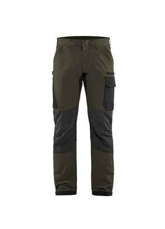 Service bukser i ridsefrit design, og i et utroligt komfortabelt og fleksibelt 4-vejs stretch materiale, der kan bruges både til fritid og på arbejde. Bukserne har en smallere pasform og det look, der er populært blandt mange brugere i dag, og for endnu bedre komfort er der elastik i taljen. Justerbar benafslutning og mesh i knæhaserne, hvilket øger ventilationen på lange og hårde arbejdsdage.