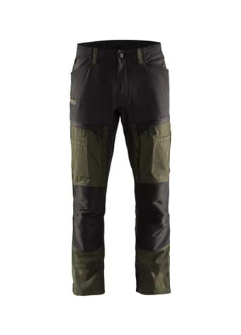 Fleksible og slidstærke service / transportbukser, der passer i forskellige situationer, der kræver komfort og bevægelsesfrihed. Bukserne har en elastisk talje og en smal pasform samt stretch paneler for øget fleksibilitet. CORDURA® Stretch forstærkning på knæ øger holdbarheden endnu mere. Bukserne har to baglommer, lommer med læg foran og en lårlomme, der er velegnet til opbevaring af dokumenter. Kontrastfarver på lommer og sømme øger det samlede indtryk. Sorte reflekterende detaljer giver buksen øget synlighed.