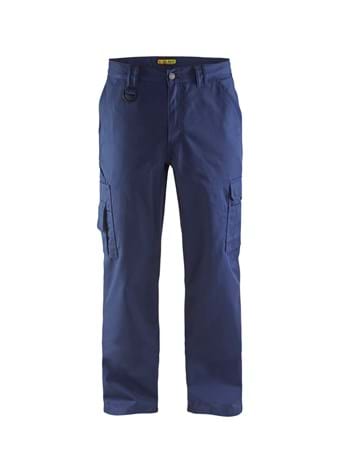 Tre lommer foran, en med lynlås. Baglomme med læg og klap med velcrolukning. Lårlomme med tredelt blyantlomme og telefonlomme. Tommestoklomme. D-ring til fastgørelse af ID-kort.Findes også i damemodel 7120.