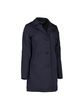 Helårs frakke – perfekt til både formel og afslappet brug. Flot moderne snit med revers og flotte manchetstropper på ærmerne. Frakken er smuds- og vandafvisende og har et let fyld af recycled polyester.