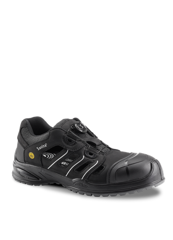911625Let ESD sikkerhedssandal i et sporty design, med S-lock snøresystem. Sandalens overdel er lavet i glat nubuck. Ydersålen er lavet af dobbelt PU, med en let profileret sål for bedre fleksibilitet. Sikkerhedssandalen er anatomisk fodformet, så foden kan bevæge sig naturligt. Sandalen er udstyret med aluminium tåværn, fiber sømværn og ProNose for ekstra slidstyrke. Hertil er der tilføjet en komfortabel og stødabsorberende support EnerG indlægssål, for øget komfort.