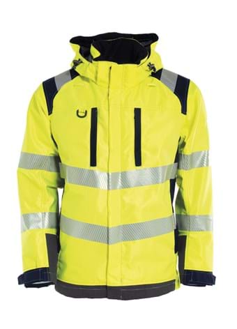 Metalfri og inherent flammehæmmende skaljakke med tapede sømme og meshforing. Vind- og vandtæt iht. EN 343. Jakken er ergonomisk designet for arbejde med løftede arme. Skjult lynlås og dobbelt vindfang med trykknapper. Justerbar og aftagelig hætte. To stropper til kommunikationsudstyr. Brystlommer med lynlås. D-ring. To inderlommer med lynlås, én til dokumenter/ipad med en integreret telefonlomme. Indvendig holder til headset. Sidelommer med lynlås. Justerbar ærmeslut og indvendig rib. Løbegang forneden. HTFR Dobby forneden og på ærmer. Påvarmede reflekser for bedre komfort. Forberedt til montering af pilefoer 9128. *Jakken har en kombineret certificering og opnår EN ISO 20471 CL.3 sammen med Tranemo buks eller overall der er certificeret i henhold til EN ISO 20471 CL.1 eller CL.2. **Hætte skal anvendes eller fjernes under svejsning eller arbejde med kemikalier.