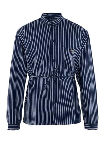 Kina krave. Lang ærmer med manchetter i ærmeafslutningen. En brystlomme. Snøre om livet.
