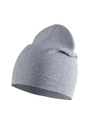 En monoton, finstrikket bomuldsbeanie til at holde dit hoved varmt. Længde 25 cm.