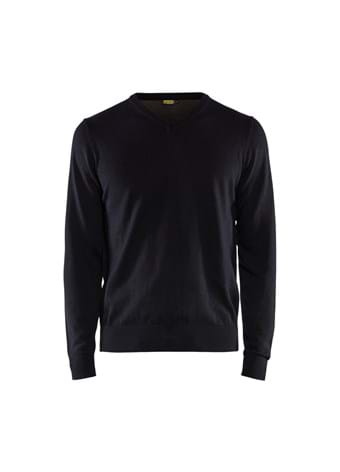 Strikket pullover med v-halsudskæring, der passer godt til Blåkläder's chinos model 1465, hvis du vil have et lidt mere forretningsorienteret look på arbejdet.