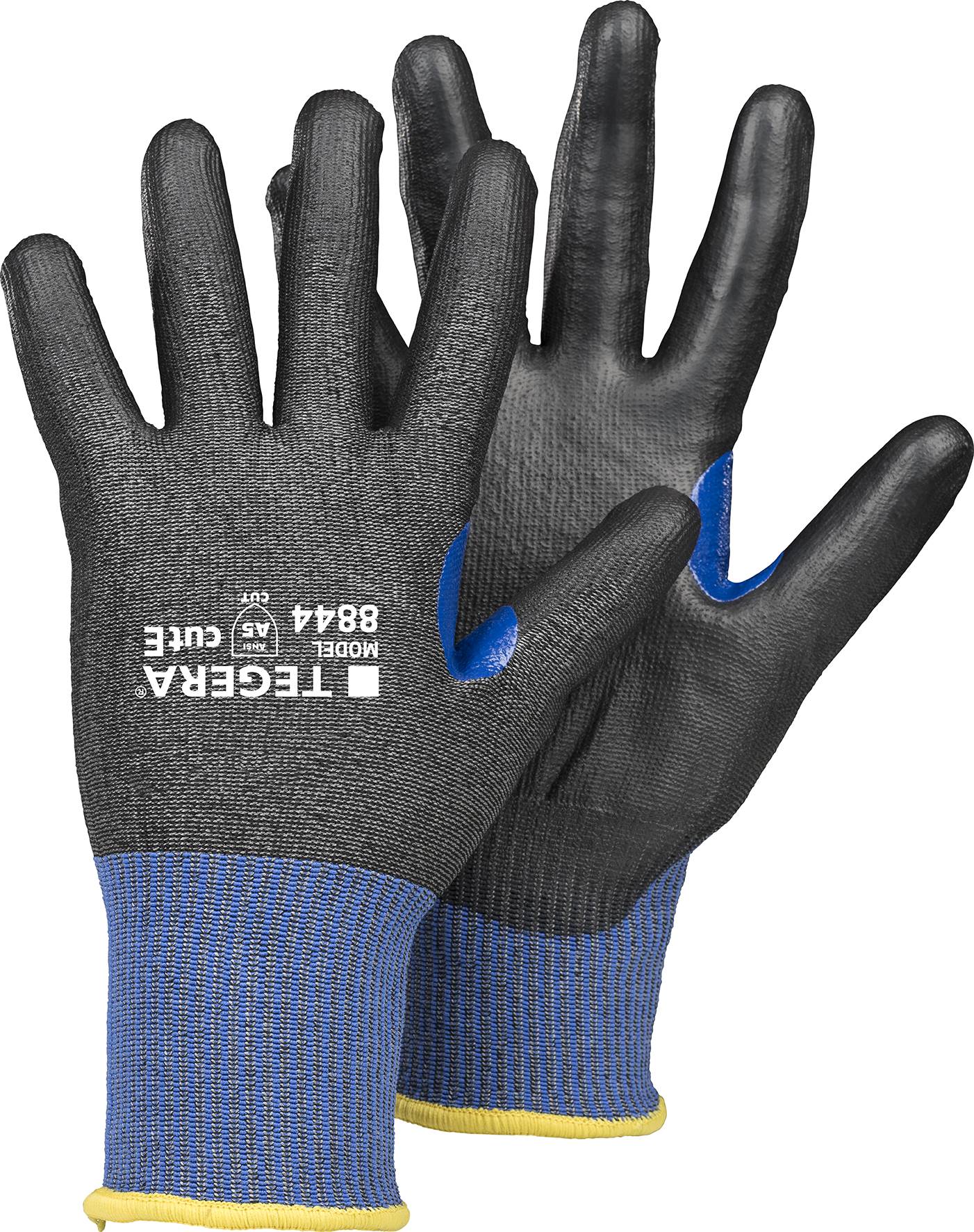 TEGERA 8844, Tynd og smidig beskyttelseshandske med snitmodstand niveau E, fremstillet med den nye avancerede CRF®Omni-teknologi, polyester og elastan. 13gg fibre, PU-dyppet for godt greb i tørre/fugtige og let fedtede miljøer. Forstærkning mellem tommelfinger og pegefinger. Den nye CRF® Omni-teknologi indeholder ingen stål- eller glasfibre, der kan irritere huden. Handskerne forbliver bløde og behagelige under hele arbejdsopgaven.