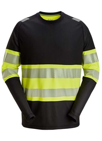 Langærmet T-shirt i dobbeltvævet materiale med høj synlighed og segmenterede varmeforseglede refleksbånd, som giver øget slidstyrke og sikkerhed ved arbejde, der kræver ekstra synlighed.