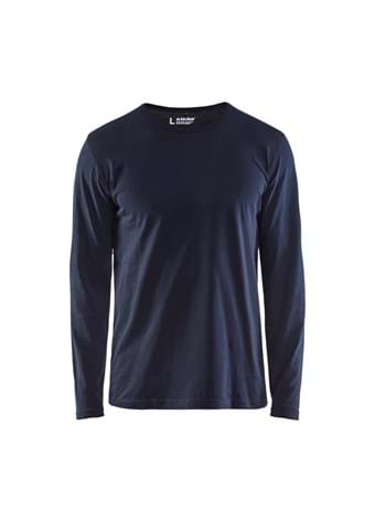 Klassisk og behagelig t-shirt med lange ærmer i 100% bomuld. T-shirten har rib i hals og forstærket nakke- og skuldersøm.