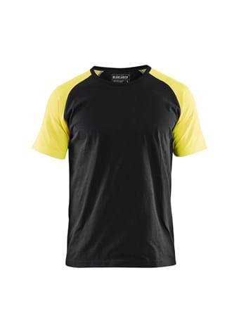 T-shirt med raglan ærmer i high vis, fås i to forskellige farvekombinationer. Den er fremstillet i 100 procent bomuld med undtagelse af ærmerne, hvilket giver en god komfort under brug. Indersiden af ærmerne består dog af bomuld, for bedre komfort.