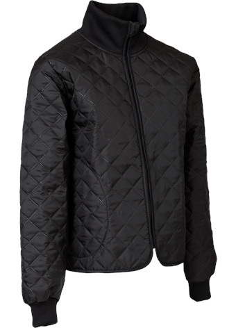 Høj krave med rib2 lommerYKK-lynlåsRib i ærmerLængere rygstykkeTern i 4x4 cm