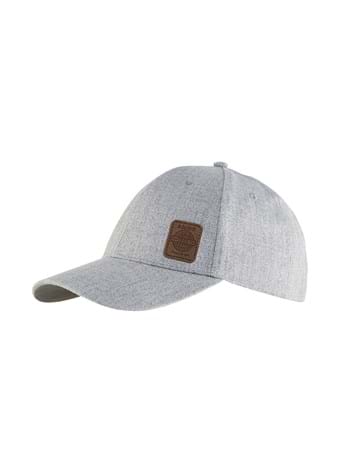 Stilfuld cap med buet skygge i uld og akryl. Velcro justering på bagsiden.
