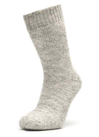 Kraftig uldsok. Frottestrik i sålen beskytter foden og giver en stødabsorberende funktion. Ribstrik i skaftet.