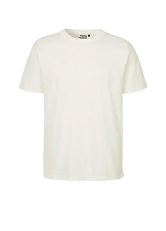 Løstsiddende single jersey T-shirt med rund hals, korte ærmer og indvendig nakkebånd. Let sænkede skuldre og med en afslappet form, der passer til både mænd og kvinder. Blød, letvægtskvalitet lavet af kammet bomuld med en vægt på 155 g/m².