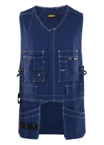En alsidig værktøjsvest med forlænget ryg i et skønt og slidstærkt materiale. Et godt valg når du behøver dit værktøj nær kroppen. Vesten har løst hængende brystlommer med sikkerhedsstropper, en med telefonlomme, en med patentknapper og knivholder. Forstærket løse sømlommer foran og ekstra brede forstærkede sømlommer bagpå.
