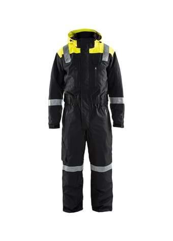 6787-1977-9933Vinterkedeldragt med reflekser på arme, ben og skuldre. High Vis materiale på skuldrene for ekstra synlighed. Vind- og vandtæt materiale. Tapedes sømme og lommer med vandtætte lynlåse. To-vejs lynlås i front og i benene. Indvendig knælomme og aftagelig hætte. Certificeret i henhold til EN 342, beskyttelsesbeklædning mod kulde og EN 343:3.1 beskyttelsesbeklædning mod dårligt vejr.