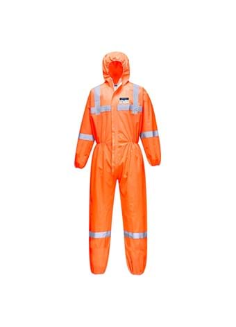 ST36-ORRDenne SMS engangsdragt har Hi-Vis refleksbånd for øget synlighed om natten eller i dårlige lysforhold. Dette trilaminat konstrueret metervare giver en høj trækstyrke og sejhed. Det giver en væske og partikelformet barriere for at beskytte arbejderen uden at hindre mobilitet og komfort.