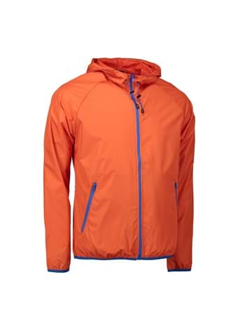 Smart letvægtsjakke med kontrastfarvet lynlås, kantebånd og snøre. Vedlagt en lille pose til opbevaring af jakken. Ideel til kampagner, sportsbegivenheder og events.