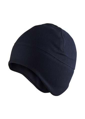 Strik hue med vindtæt bånd over pande og nakke. Den er blød og behagelig i et temperaturregulerende materiale, der holder dig varm og tør i koldt vejr. Passer godt under hjelme.