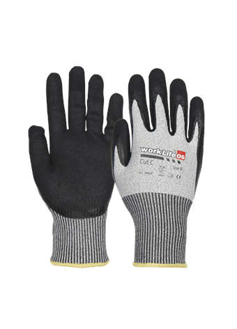 34820Tynd, sømløs, slidstærk og skærehæmmende handske af polyethylen (HPPE), glasfiber og polyester. Handsken har ribkrave og "sandy" nitril foam belægning i håndflade og på fingerspidser.